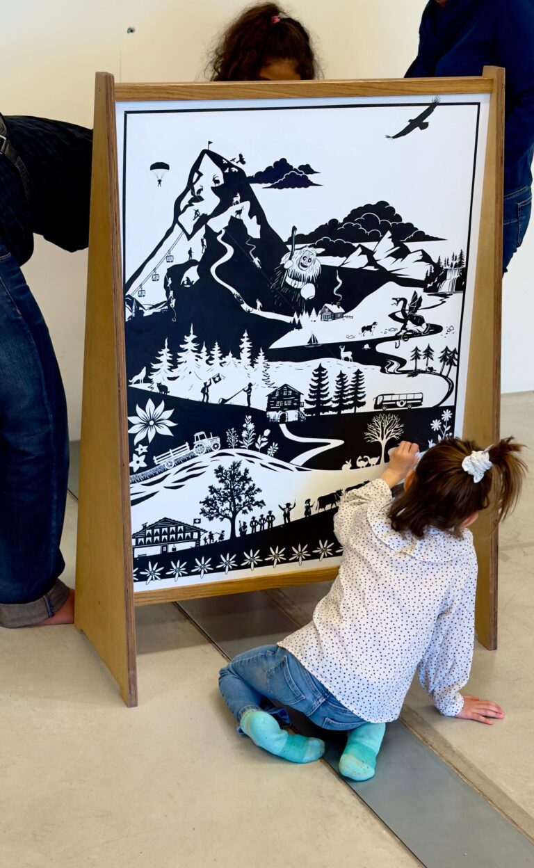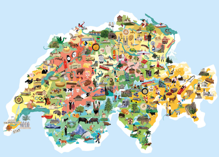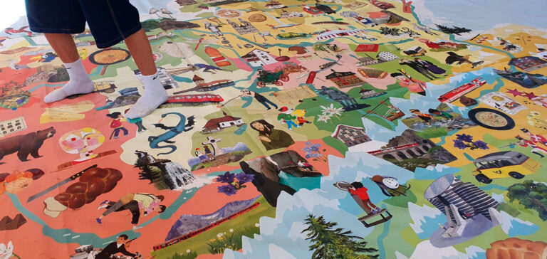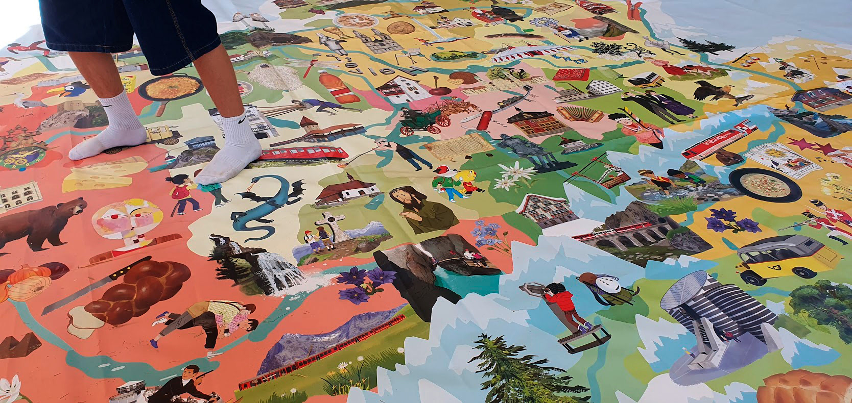 L’objectif de cette exposition est de donner à voir ce que pourrait être un musée pour les enfants sur la thématique de la Suisse. Elle comprend plusieurs modules d’activités ainsi qu’une carte géante illustrée de plus de 200 symboles.